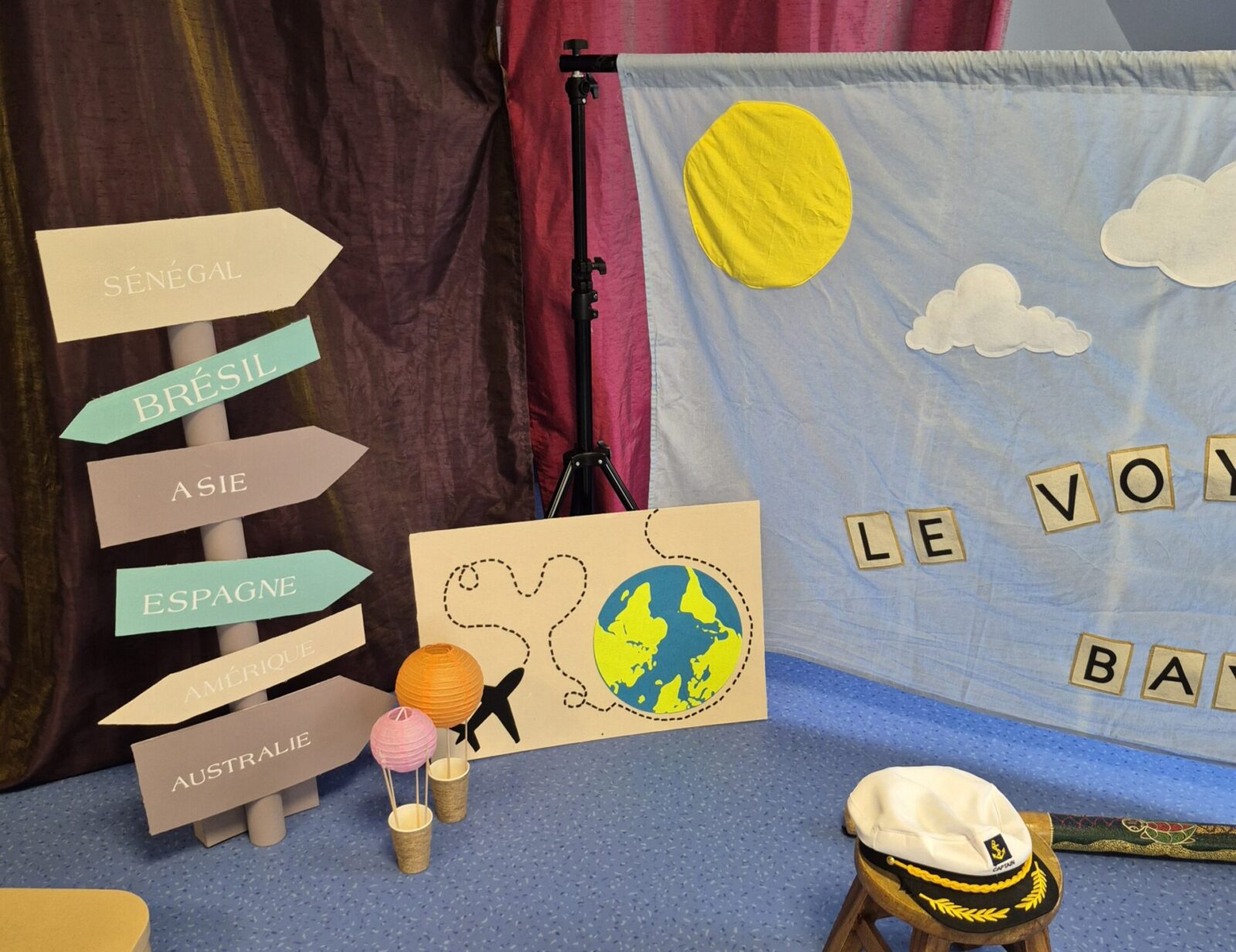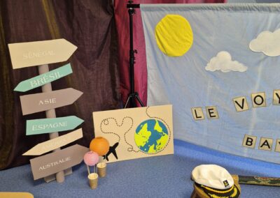 une marionnette voyageuse, emmène les tout-petits dans un tour du monde sensoriel fait d’histoires, de comptines, de musique et de danse.
