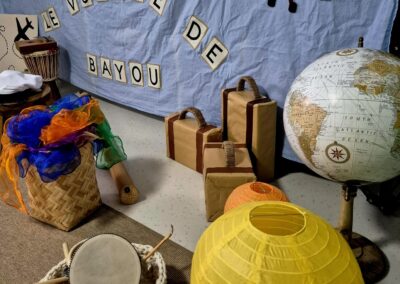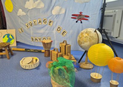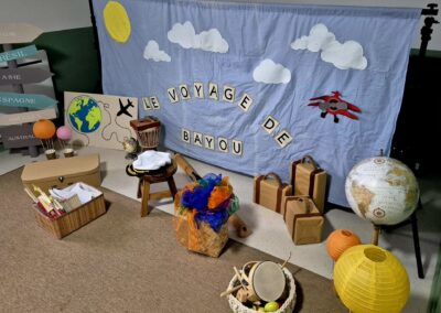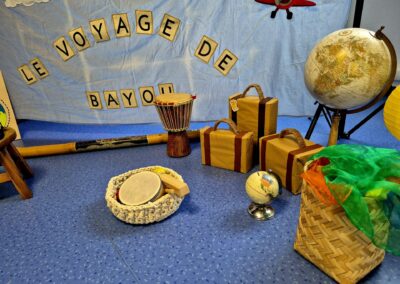 Au fil de son périple, Bayou découvre des pays, des sons, des couleurs et des cultures qu’il partage avec les enfants à travers :