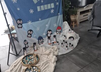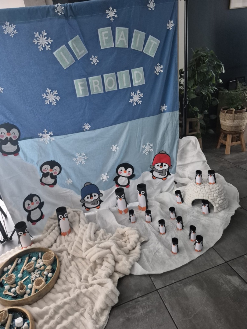 Au fil de cette parenthèse hivernale, les enfants découvrent l’univers de la saison froide à travers des histoires, des comptines et des moments d’exploration sensorielle adaptés à leur rythme. Guidés par l’imaginaire, ils partent à la découverte de la banquise, de ses paysages et de ses habitants, grâce à un décor immersif entièrement fait main.
