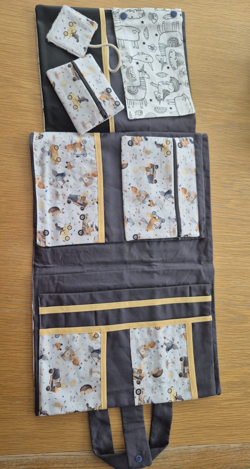 - De nombreuses poches pour ranger feuilles, coloriages et gommettes