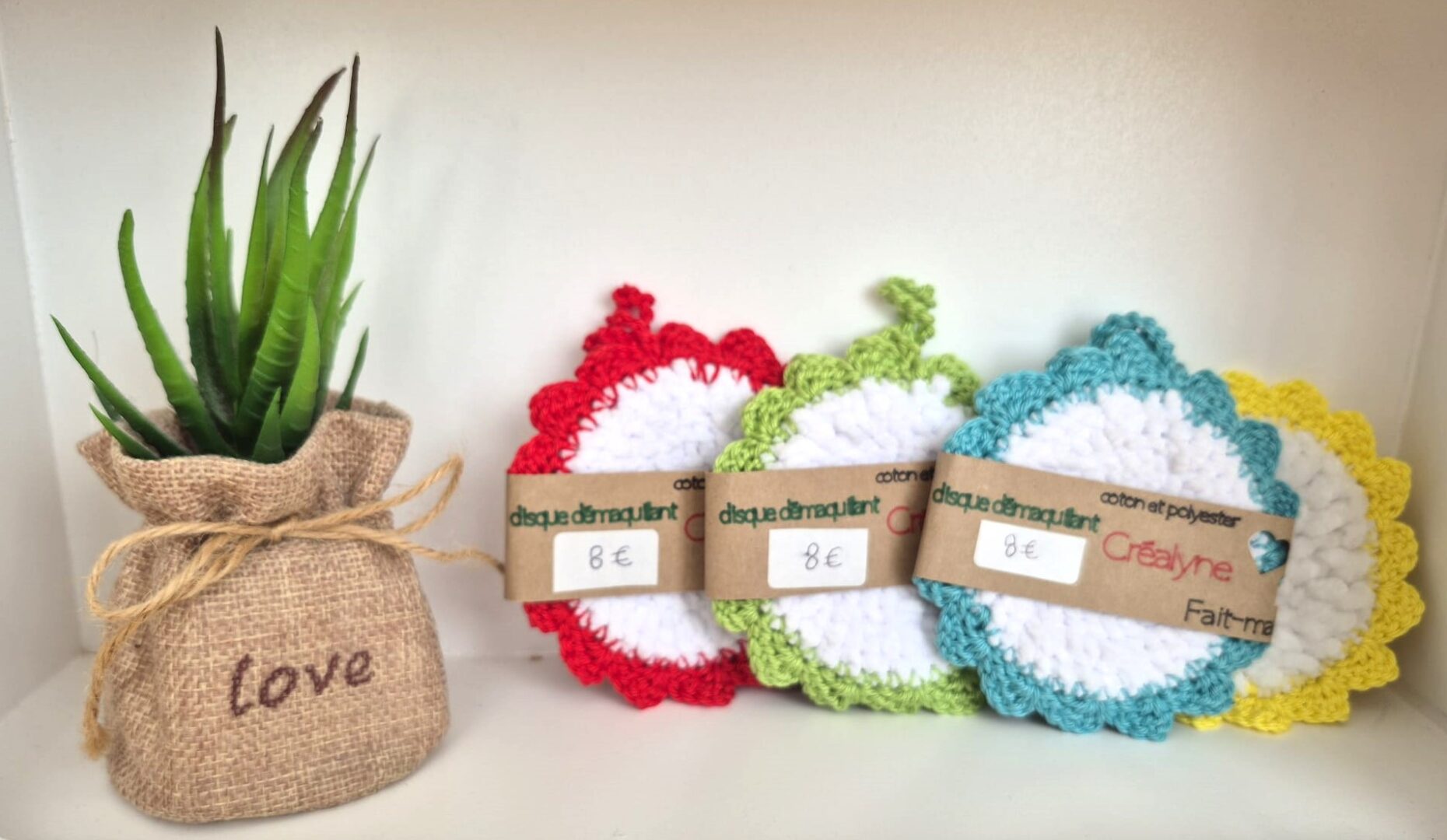 Les disques démaquillants de la gamme ÉcoCrochet allient douceur et écologie. Réutilisables et lavables, ils prennent soin de votre visage et de vos yeux tout en réduisant les déchets. Idéal pour une routine beauté zéro déchet et respectueuse de votre peau.