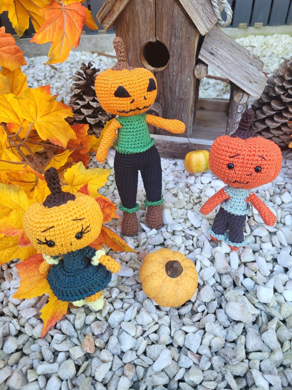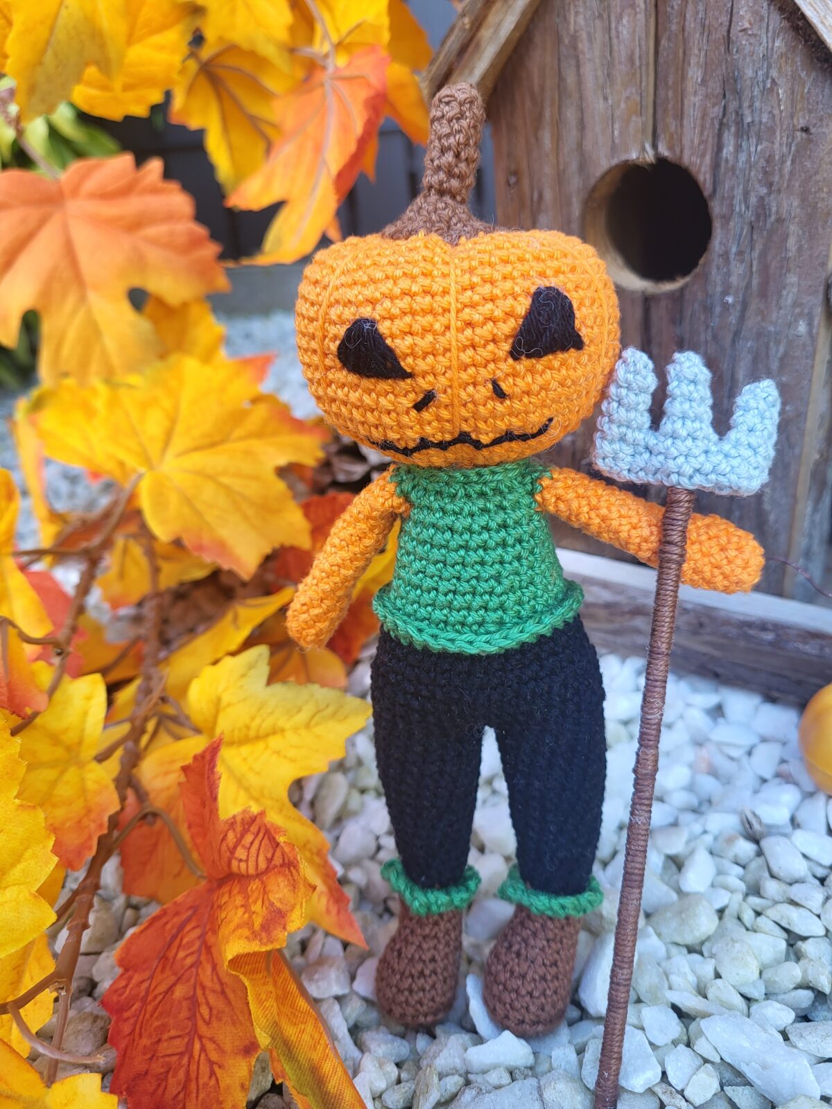 Crocheté avec minutie, ce personnage est idéal pour créer un univers automnale aux alllures d’Halloween. Il trouve naturellement sa place aux côtés de la Maman Citrouille et de leurs enfants.