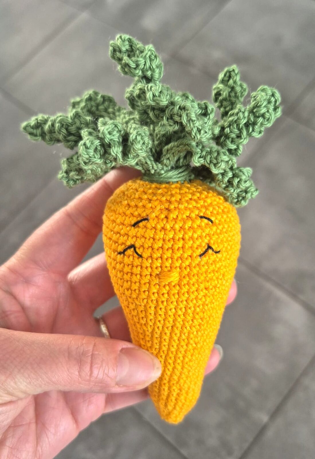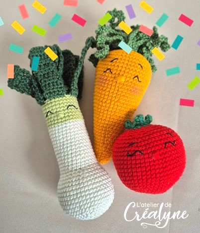 La carotte peut également être réalisée en hochet, grâce à l’intégration d’un petit hochet à l’intérieur. Le tutoriel vous explique clairement comment intéger ce hochet en toute simplicité au cours de la réalisation.
